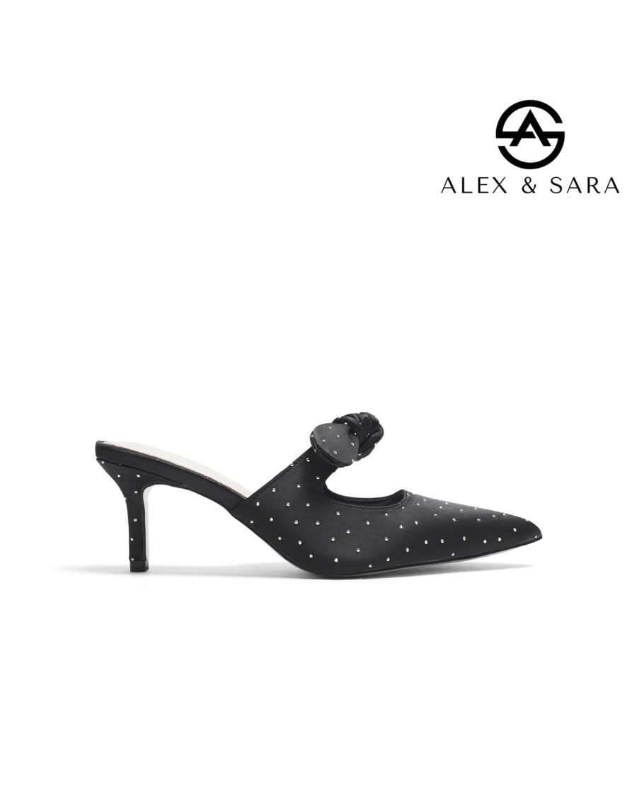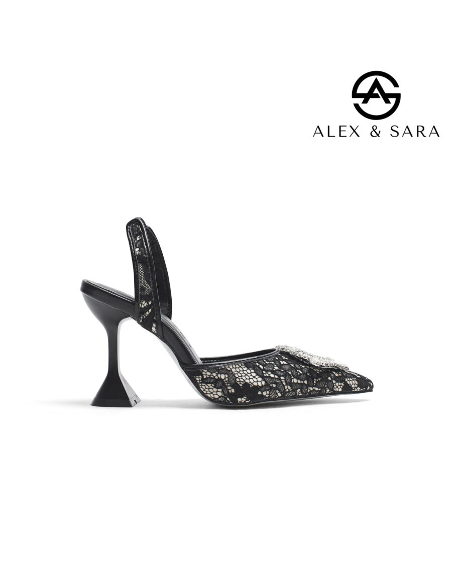 LIN37-Giày Slingback Mũi Nhọn Lưới Bi Điểm Nhấn Nơ Ngang Thời Trang Lin Collection Cao 5cm