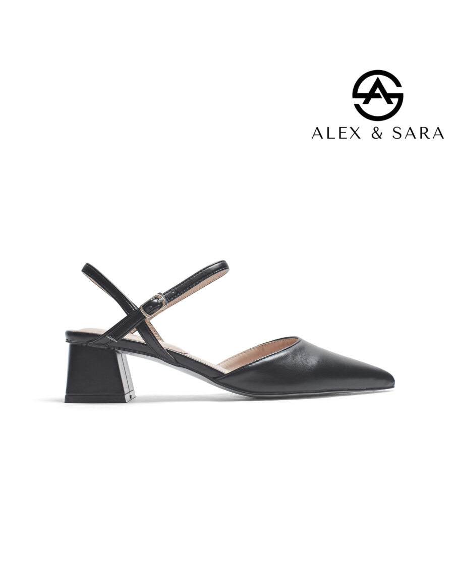 LT101 – Giày sục lười Alex & Sara gót cao 7cm mũi nhọn đính đá nơ phong cách tiểu thư