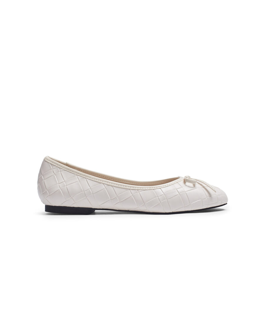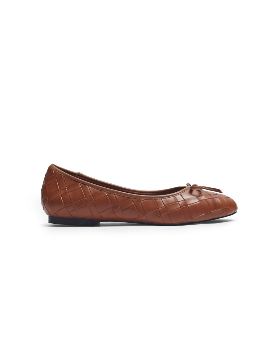 LT127- Giày Búp Bê Nữ Đế Bệt Mũi Tròn Da Dập Vân Caro Kèm Nơ