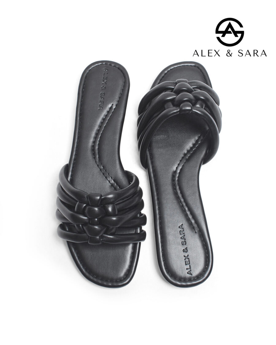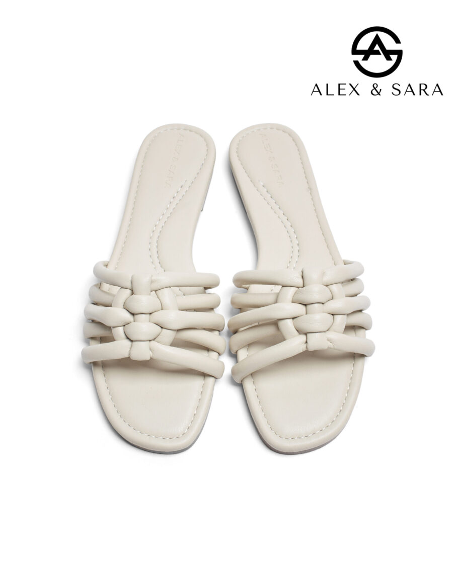 LT101 – Giày sục lười Alex & Sara gót cao 7cm mũi nhọn đính đá nơ phong cách tiểu thư