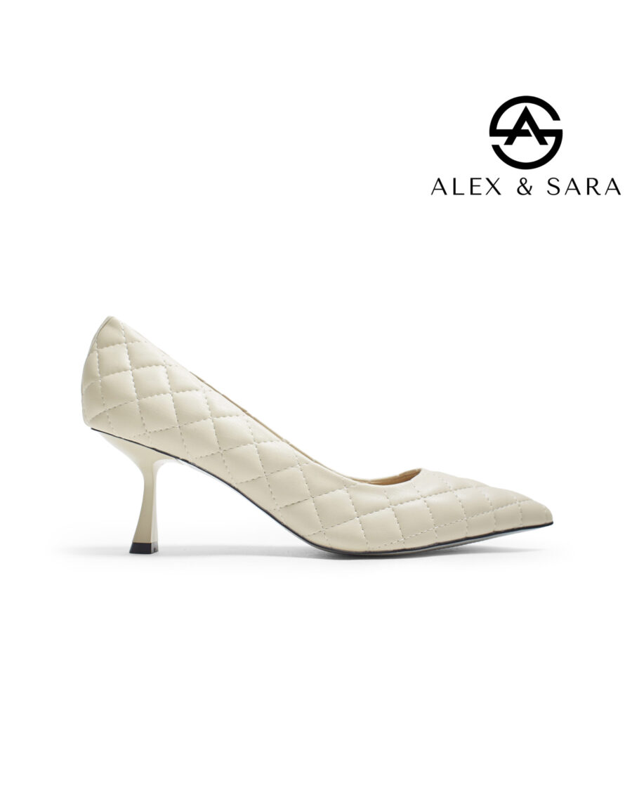 LT112 – Giày Cao Gót Nữ Mũi Nhọn Da Chần Ô Vuông, Gót Nhỏ Thanh Lịch
