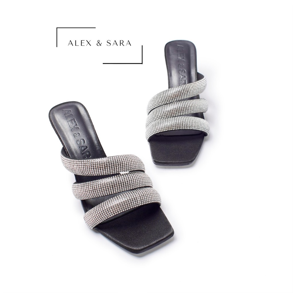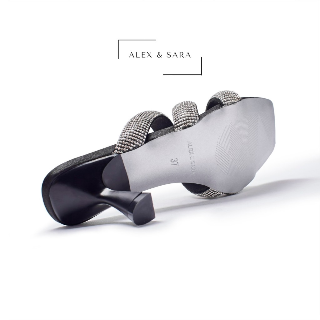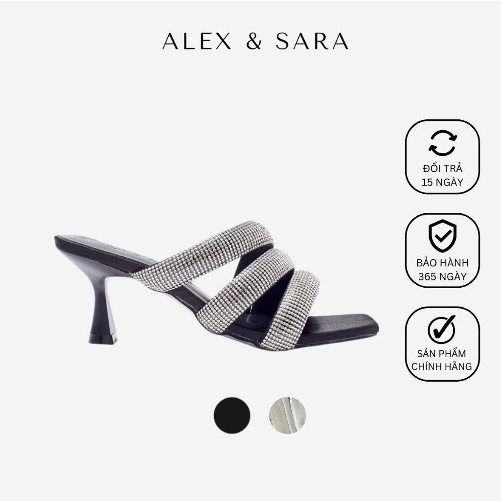 Dép nữ cao gót guốc mule thời trang, quai đính đá cao cấp bảng to thiết kế sang trọng, đi tiệc | ALEX & SARA – AL425