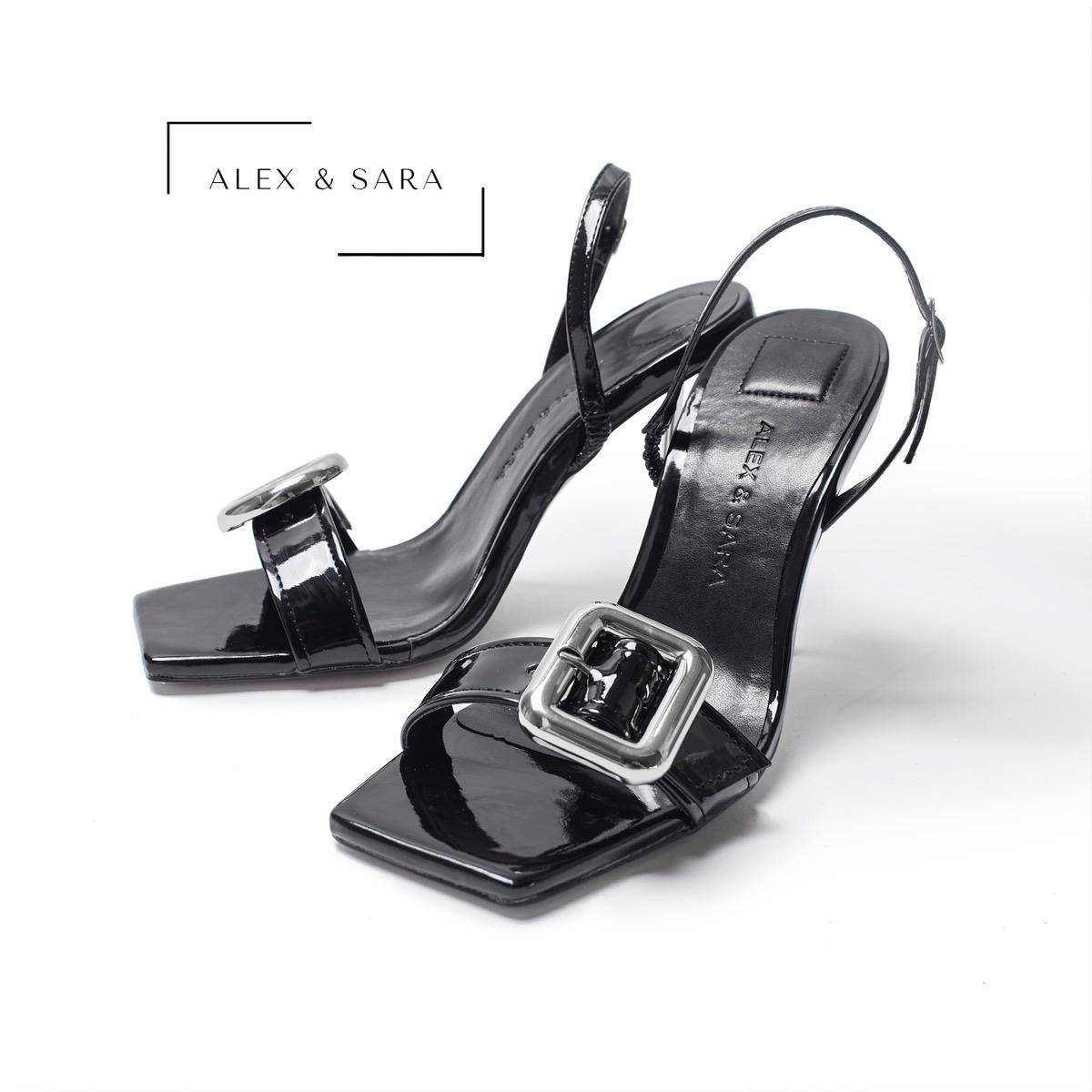 Giày Sandal nữ thiết kế khóa cài vuông, gót trụ thẳng, mũi vuông thanh lịch, đi làm đi tiệc | ALEX & SARA – AL432