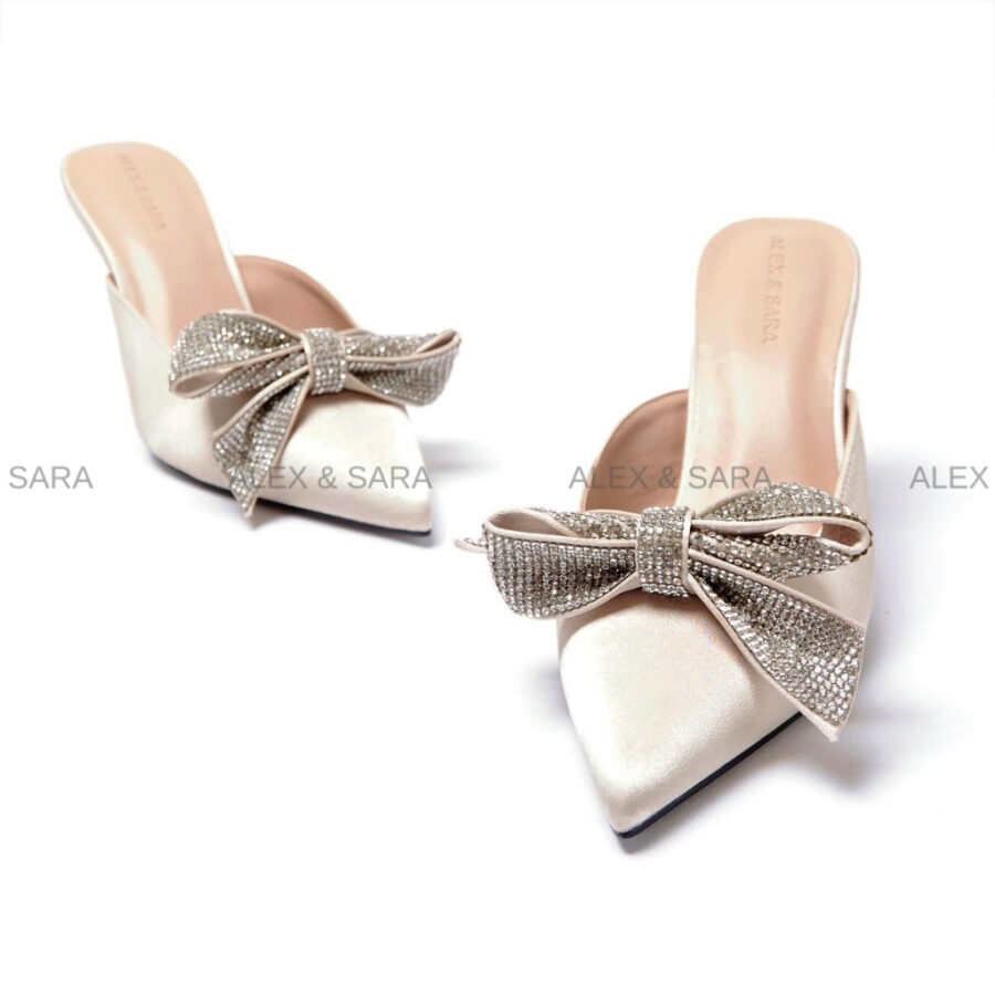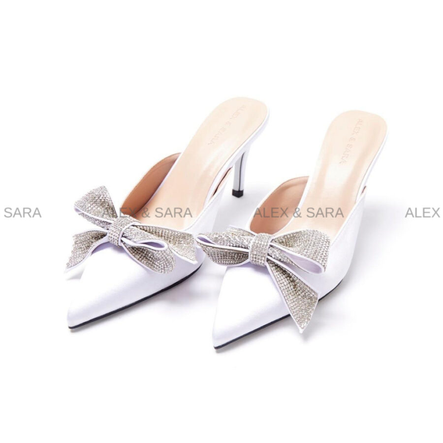 Guốc nữ cao gót họa tiết nơ đính đá cao cấp, sang trọng cho nàng đi tiệc, thiết kế thời trang | ALEX & SARA – AL402