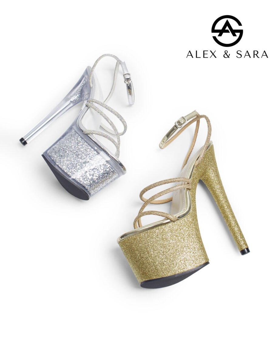 LT149 – Giày Sandal Cao Gót Platform Nữ Quai Đính Đá Lấp Lánh – Gót Siêu Cao Dự Tiệc