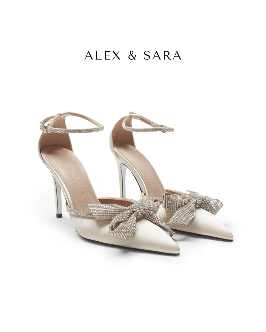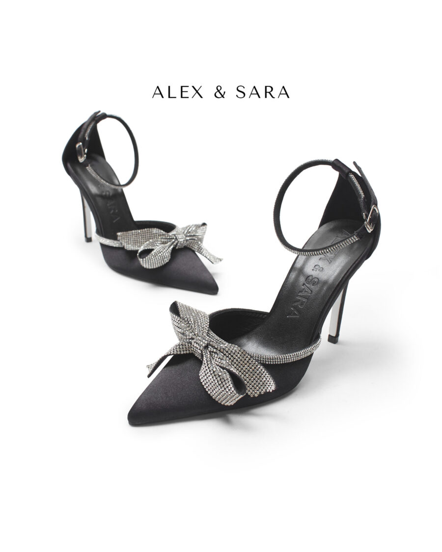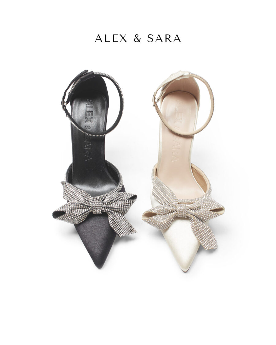 LT51 – Giày cao gót mũi nhọn cao gót bít hậu điểm nhấn nơ đá sang trọng