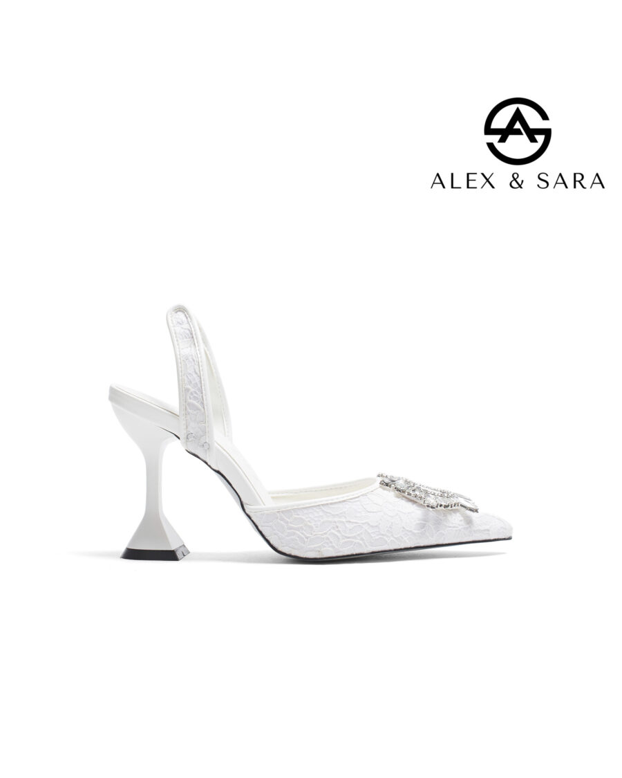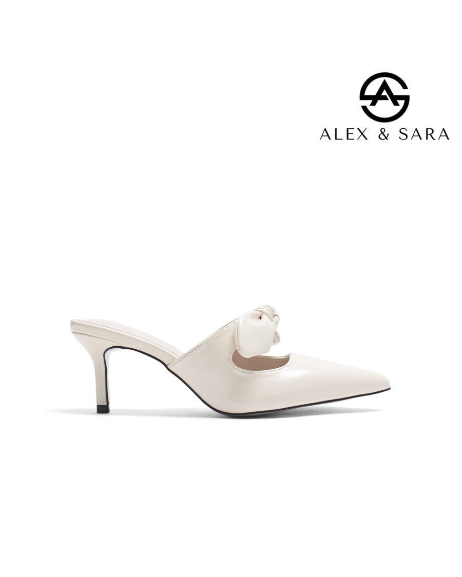 LIN37-Giày Slingback Mũi Nhọn Lưới Bi Điểm Nhấn Nơ Ngang Thời Trang Lin Collection Cao 5cm